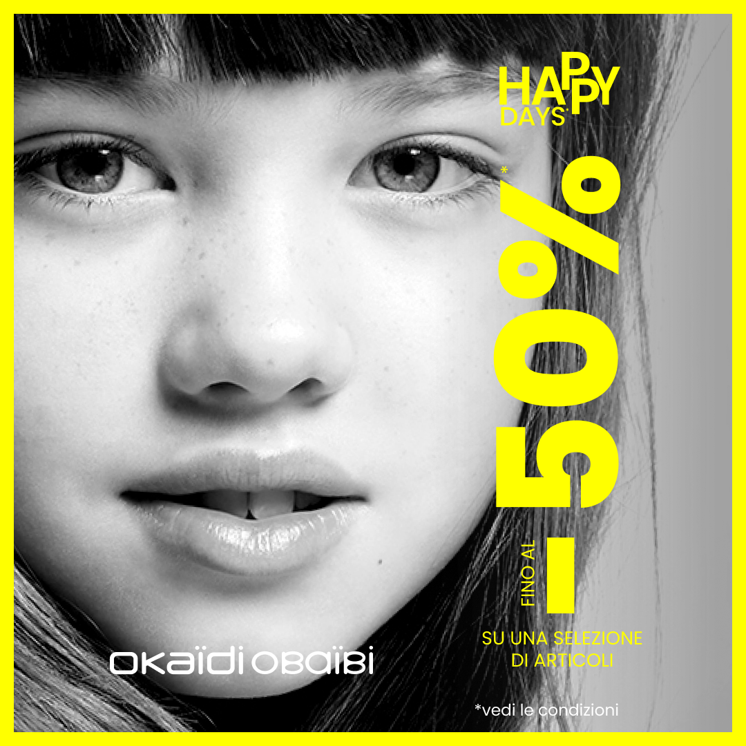 Happy days Okaidi! Una selezione di capi per i tuoi bimbi a prezzi scontati !Ti aspettiamo in negozio da Okaidi Tanti sconti ti aspettano da okaidi ! Fino al -50% su una selezione di articoli in negozio. Vieni a trovarci!Fino al -50% di sconto da Okaidi! La promo Happy su una selezione di articoli per bambini da 0 a 12 anni ti aspetta.Approfittane subito in negozio.