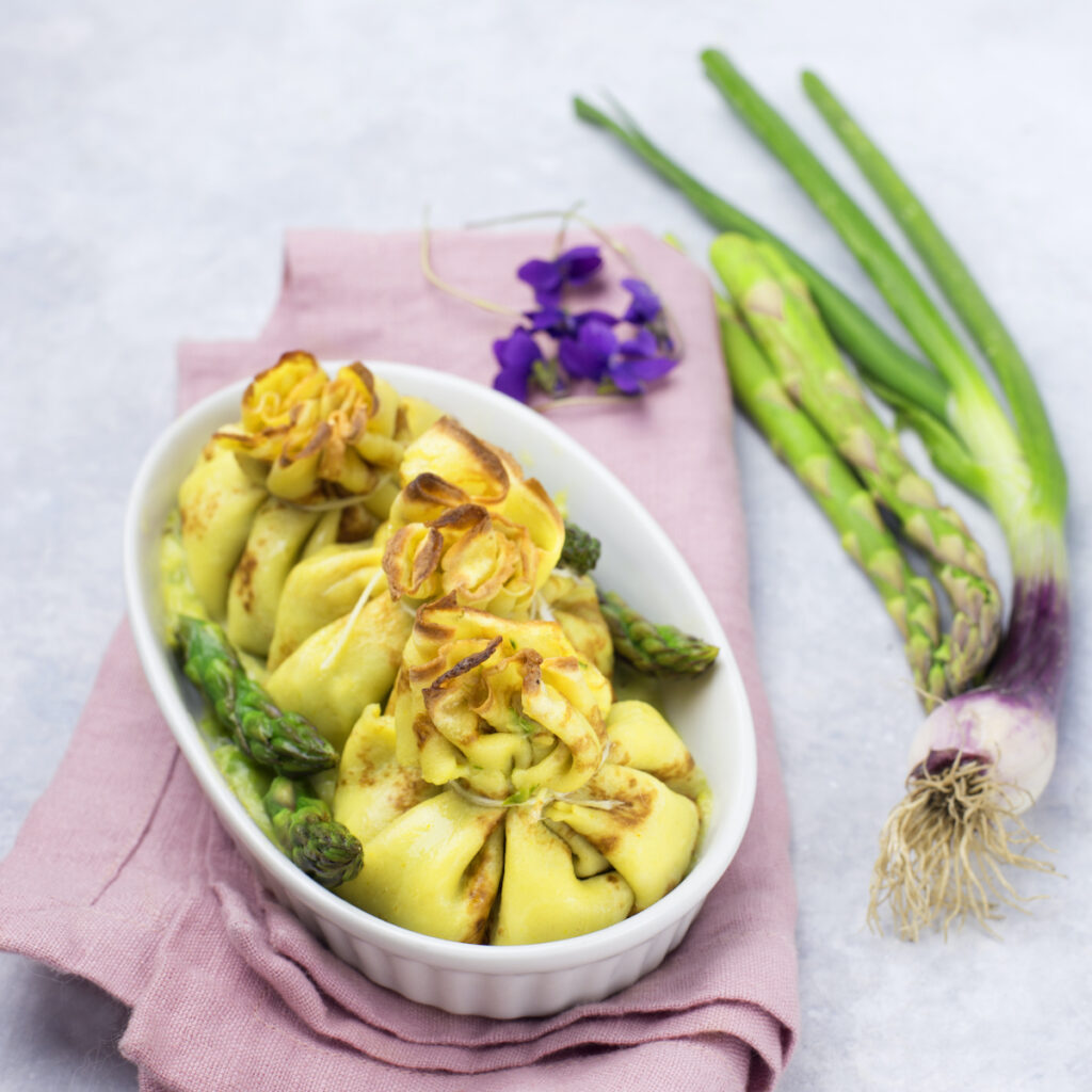 FAGOTTINI DI CRESPELLE AGLI ASPARAGI E ZAFFERANO