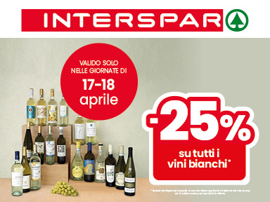 Nei giorni del 17 al 18 aprile da Interspar risparmia il 25% su tutte le salsicce, vini bianchi e pesce surgelato. Un’occasione per fare scorta di ciò che ami a un prezzo vantaggioso. Offerta valida nei punti vendita aderenti. Consulta il regolamento in store per ulteriori dettagli.
