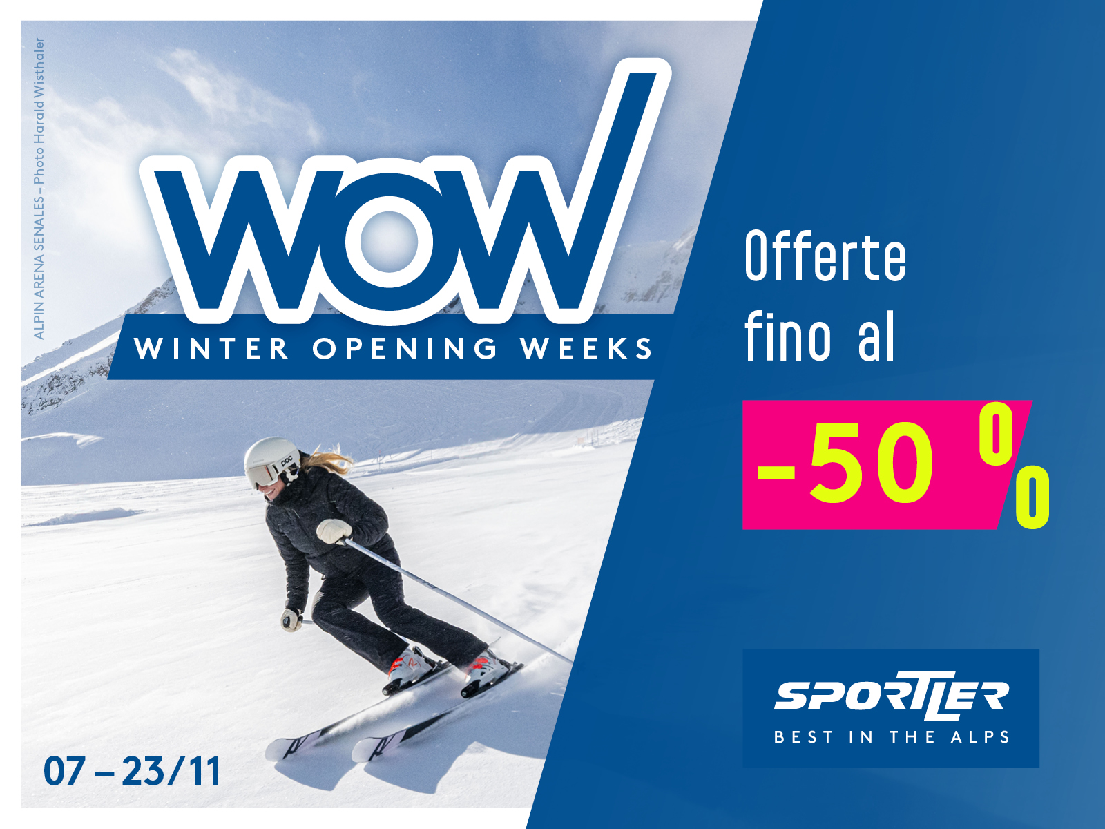 Vuoi passare un inverno WOW? Da SPORTLER sono arrivate le Winter Opening Weeks! Scopri le nostre offerte fino al -50% su sci, scarponi da sci, giacche e tanto altro. Ora in tutti gli SPORTLER store e su sportler.com